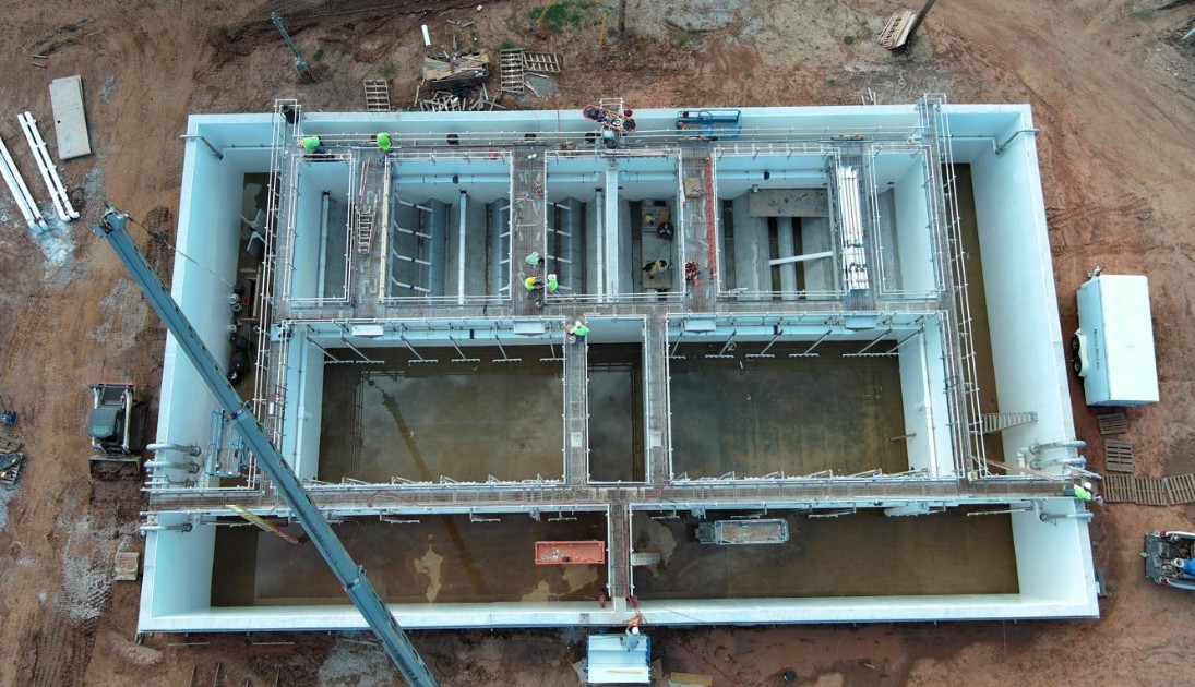 Project includes construction of a new influent lift station, screening structure, grit removal structure, Aeromod basin, UV disinfection structure, and new Ops building.